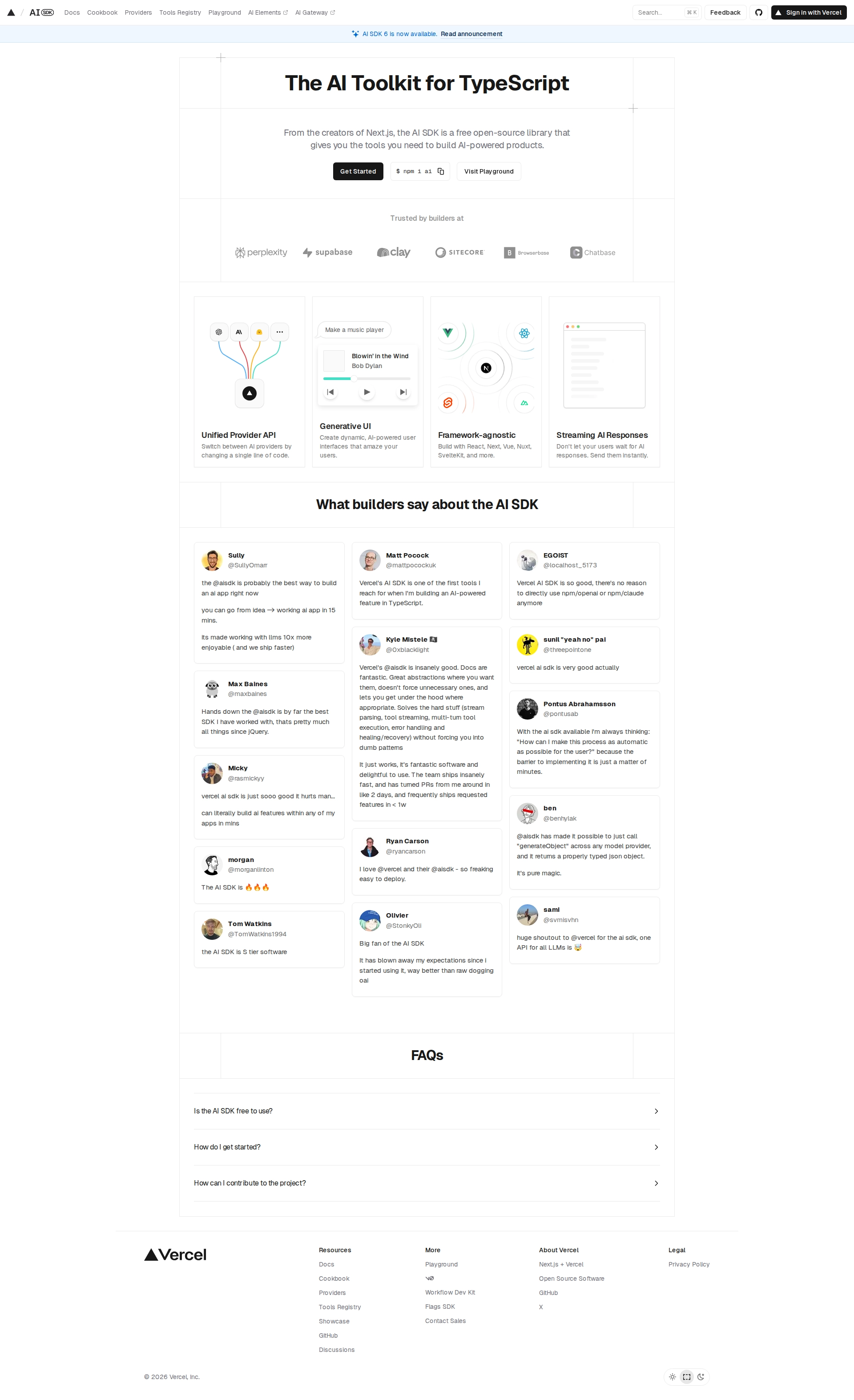 The AI SDK helps developers build AI-powered apps with unified APIs and model integrations.