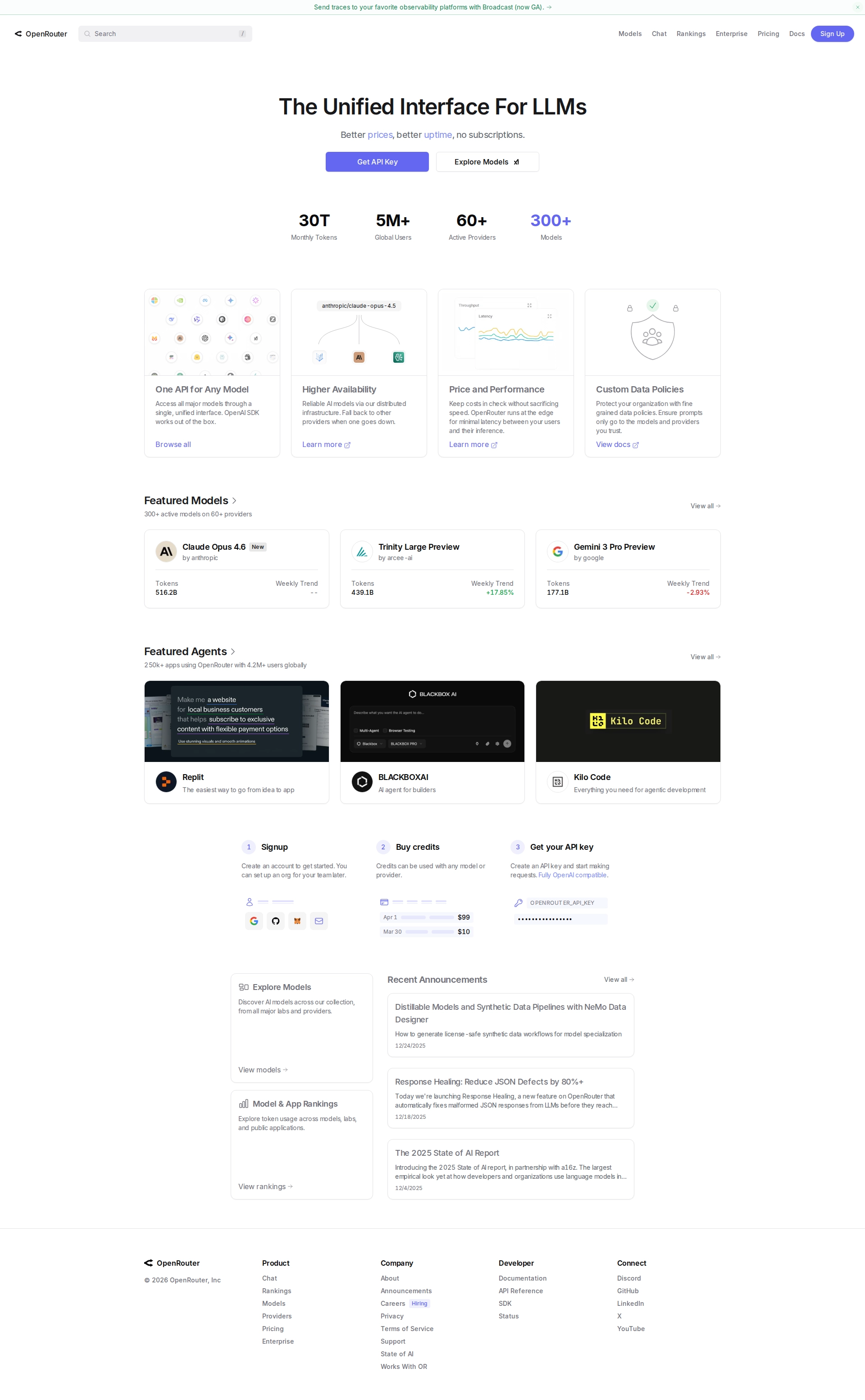 OpenRouter provides a unified API for accessing, routing, and comparing multiple large language models.
